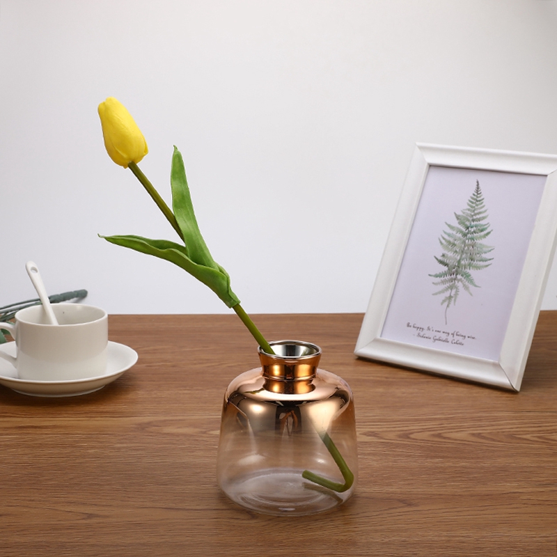 Vas Bunga Kaca Electroplated Portable Warna Emas Gradasi